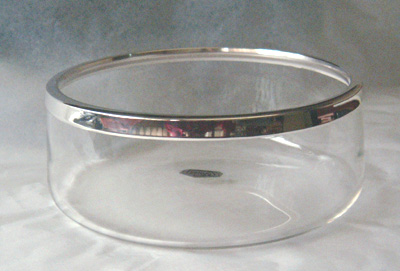 Centro Cristal con Aro en Metal Plateado Brillante. Diámetro aproximado: 24 cm.