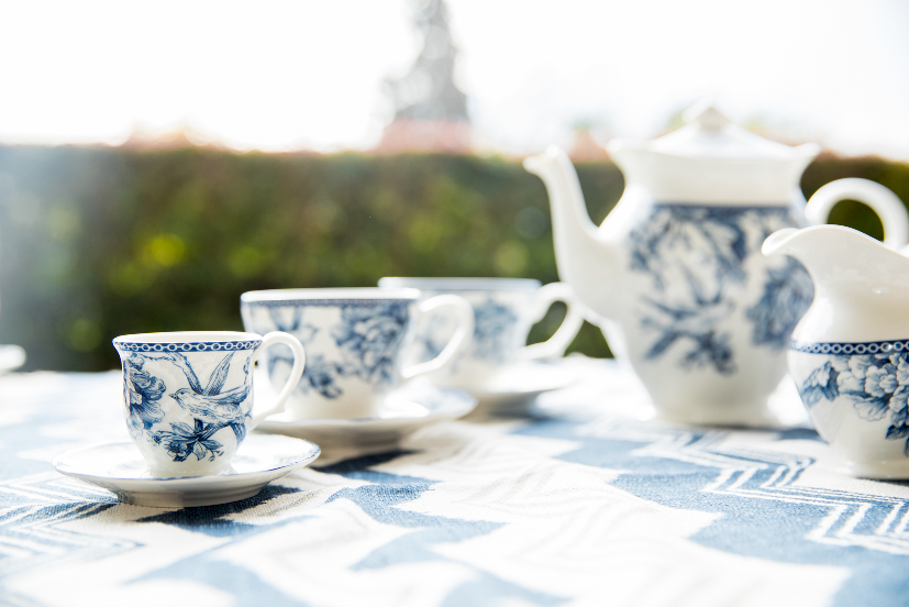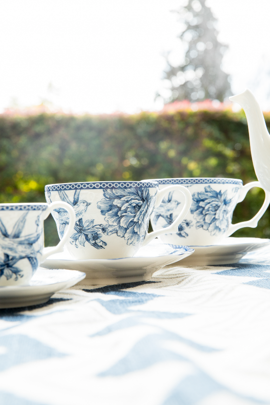 Incluye: 12 platos playos, 12 platos hondos, 12 platos postre, 12 tazas cafe con plato, 12 tazas te con plato, 1 fuente oval 35 cm, 1 ensaladera 23cm, 1 tetera, 1 azucarera, 1 lechera.