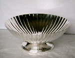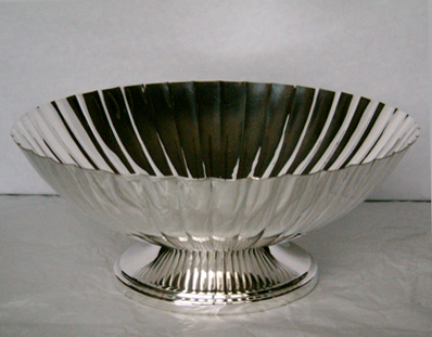 Centro Frutera Cincelada, con Pie Liso. Metal Plateado. BD Orfebres. Medidas Aproximadas: 7 cm.* 27 cm.